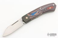 This slipjoint by David Taber features a hand rub satin finished blade with nail nick. The handle has carbo quartz bolsters, Corvette Fordite covers, stainless steel liners, escutcheon and spring. Has half-stop, flush in all positions. Comes with a leather slip sheath and COA dated January 2023. New from maker at the 2023 Blade Show.