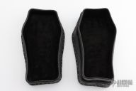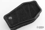 Black leather and shark skin coffin box. 10.5" long, 6" wide and 3.25" tall. Excellent condition.