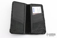Black shark skin and black leather wallet. Excellent condition. 7.5". 3.5" closed.