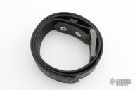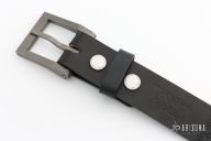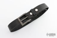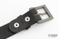 Stonewashed Titanium Blackside Customs modular belt buckle. Coems with a 36" black leather belt by Tanner Goods. Excellent condition.