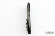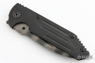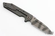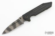 This Dauntless framelock is a collaboration between Triple Aught Design and Strider Knives. It features a Tiger stripe finish blade, grooved black G10 and flame titanium handle. Flame titanium clip. Includes Hinderer "Lock Bar Stabilizer" for maximum reverse lock retention. TAD and Strider logos on blade. Comes with velcro pouch. Missing the thumbstuds. Has scuffs and scratches, otherwise great condition.