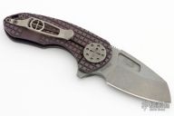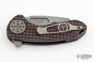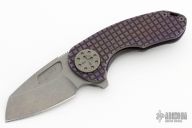This F3 Compact by Curtiss Knives features a blasted and stonewashed Magnacut blade with notched thumbrest and flipper. The handle has a frag pattern and anodized titanium frame over notched titanium backspacer, matching titanium tip up clip. Smooth and fast opening using a Caged Bearing System. Nice blade seating, detent and lock up.  Includes the original box, zippered case and COA dated 6-23-23. New from maker.