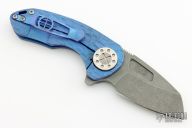 This F3 Compact by Curtiss Knives features a blasted and stonewashed Magnacut blade with notched thumbrest and flipper. The handle has a FJ Milled and anodized titanium frame over notched titanium backspacer, matching titanium tip up clip. Smooth and fast opening using a Caged Bearing System. Nice blade seating, detent and lock up.  Includes the original box, zippered case and COA dated 6-24-23. New from maker.