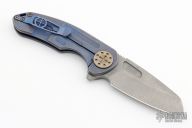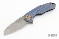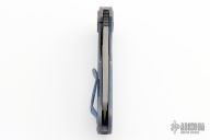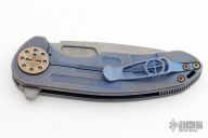 This F3 Medium by Curtiss Knives features a stonewashed Magnacut blade with notched thumbrest and flipper. The handle has a Ball Milled and anodized titanium frame over notched titanium backspacer, titanium tip up clip. Smooth and fast opening using a Caged Bearing System. Nice blade seating, detent and lock up.  Includes the original box, zippered case and COA dated 6-20-23. New from maker.