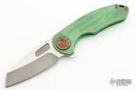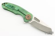 This F3 Medium by Curtiss Knives features a two-tone Magnacut blade with notched thumbrest and flipper. The handle has a Ball Milled and anodized titanium frame over notched titanium backspacer, titanium tip up clip. Smooth and fast opening using a Caged Bearing System. Nice blade seating, detent and lock up.  Includes the original box, zippered case and COA dated 6-16-23. New from maker.