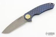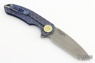 This F3 Large by Curtiss Knives features a stonewashed Magnacut blade with notched thumbrest and flipper. The handle has a PM Milled and anodized titanium frame over notched titanium backspacer, titanium tip up clip. Smooth and fast opening using a Caged Bearing System. Nice blade seating, detent and lock up.  Includes the original box, zippered case and COA dated 6-22-23. New from maker.