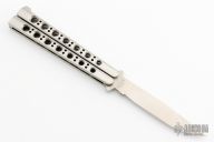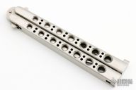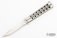 The model 45S by Benchmade features a spear point blade with false top edge. Stainless steel skeletonized handles with T latch. Has a few light scratches, otherwise excellent condition. Comes with original box.