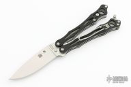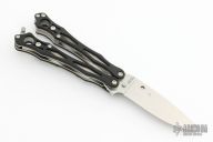 This Spyderfly 2 Balisong by Spyderco has a satin finished blade. Handle is black G10 over stainless steel liners and stainless steel paper-clip style pocket clip. Comes with original box. Excellent condition.