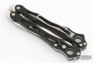 Spyderco's original SmallFly was a uniquely different "spin" on the balisong or Filipino butterfly knife. Now this remarkable design is back with a full-flat-ground drop point blade profile crafted from CPM-S30V stainless. Like the original, it features skeletonized twin handles with full stainless steel liners and peel-ply-textured scales. The Round Holes at the butt end of both handles reflect Spyderco's iconic trademark and help achieve optimal balance for high-speed manipulation. A spring-loaded latch attached to the "free" handle secures the handles together in the closed position, while the removable wire pocket clip may be attached to either side of both handles as both a carry option and tactile index.