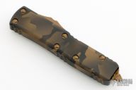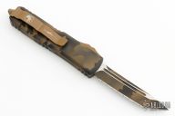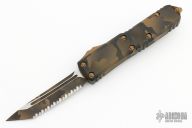 This UTX-85 by Microtech features a fully serrated tanto blade with Coyote Camo coating. The handle has a Coyote Camo coated aluminum frame with coyote hardware and tip down clip. Comes with original box and papers. Dated 09/2022 and s/n 090. Excellent condition.