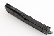 This Combat Troodon by Microtech Knives features a tumbled DLC Hellhound blade with false top edge. The handle has a black aluminum frame with tip down black stainless steel clip black hardware. Comes with original box. 06/2021 and S/N 260. Excellent condition.