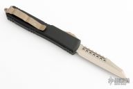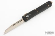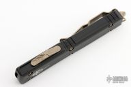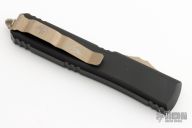 This Ultratech by Microtech Knives features a bronzed Warhound blade with satin flats and false top edge. The handle has a black aluminum frame with matching tip down stainless steel clip and hardware. Comes with original box and papers. 12/2022, S/N 1784. Excellent condition.