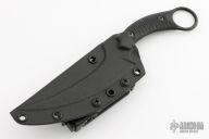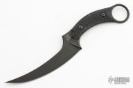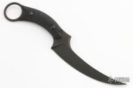 The Bastinelli Mako fixed blade offers a versatile design for tactical and EDC use. It's outfitted with a black G-10 handle and a trailing point blade made from Bohler N690 steel. A karambit style finger hole provides a tactical grip with excellent retention. Item includes a molded kydex sheath with a belt clip. Comes with original box. Excellent condition.