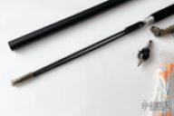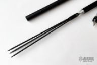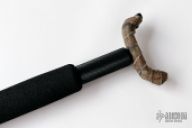 Each one is completely handmade in our shop from the finest materials. The staff parts are made from hardened aluminum and anodized black. The blade is made from 440C stainless steel with a heavy wedge grind for strength and a keen cutting edge. Knurled grip. Grey cerakote.