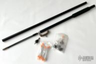 The Survival Staff™ is a survival tool for the wilderness, city streets, or your car. The package is made up of nine basic parts that can be changed around to make a hiking staff, 57" overall, walking stick, 38" long, or a 24" baton. All parts screw together so that the Survival Staff™ can be changed around to be a blow gun, a knife, a lance, or if needed the blade can be left out. The hardened point makes an effective weapon or the entire unit can be used for striking. The optional steel head adds more weight for this use. When the basic Staff is put together it weighs 1 lb. 10 oz. The parts are: