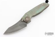 This Thuck by John Gray Knives features an acid tumbled blade with dual thumb studs. The handle is a bark finished and anodized titanium frame with matching tip up clip. Nice detent, lockup and blade seating. Comes with zipper case. Has some scuffs and scratches, otherwise Excellent Condtion.
