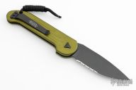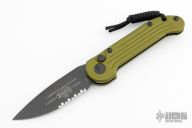 This LUDT side opening automatic from Microtech has a black finish blade with a partially serrated edge and a contoured OD Green aluminum frame. Stainless steel clip. Dated 10/2022 and serial number 28055 comes with original box. Excellent condition.