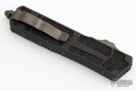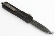 The Microtech Scarab II is a high quality tactical out-the-front knife, based on the original Microtech Ultratech design. Built to withstand the extreme, the Scarab II excels in high-intensity covert operations. The Scarab II is designed for a broad spectrum of utility and close quarter combat applications for use by qualified law enforcement, military, and government agency operatives. The Scarab II is fabricated to the highest possible standards to assure reliability and safety with its use. Featuring a one-handed, open and close, dual-action out-the-front (OTF) design, and double edge blade. The Scarab is produced with a large easy-to-grip handle that contains non-slip grip inlays on both sides. Comes with original box and papers. Excellent condition.