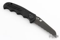 This Spyderco Autonomy features a black fully serrated blade, H-1 blade steel. The handle has black G-10 scales, black stainless steel liners, and a tip up reversible clip. Excellent condition. This knife is a factory second.