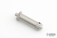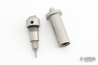 This pocket-size tool kit is a complete disassembly tool for the XM folder. It includes a built-in spanner wrench, which makes it very easy to hold both the wrench and the knife at the same time while making pivot adjustments. The head unscrews from the main body, which contains a precisely machined screwdriver blade that matches the slot on the pivot screw of the XM-18. The head will also hold any standard 1/4″ bit. In the case of the XM-18 it is a 5/64″ hex that works on the handle screws. The crossed drilled hole in the male end is there so you can use it as a “T” handle for extra torque. These are made from 17-4 PH hardened stainless steel, with a bead blast finish. Excellent condition.