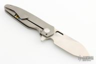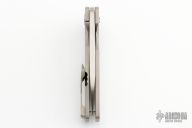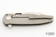This Stray Flipper by Keanison Knives features a satin finished blade with thumbhole and flipper. The handle has bead blasted titanium frame, stainless post, and a tip up titanium clip with hidden screws. Rides on bearings, nice detent, lockup and blade seating. Comes with original box and COA dated 8/15/18. Has a couple light scuffs, otherwise excellent condition.