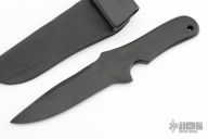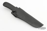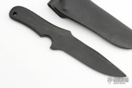 This is a Large Frequent Flyer from Mad Dog Knives. It features a clip point blade with top edge and Mad Dog etched on the ricasso. Blade and handle are black G-10 and non-magnetic; .363" thickness. 1.409" blade depth. Fits well in the hand. Includes a kydex sheath with belt loop. Has a few scratches, otherwise great condition.