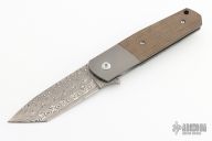 The EZE (EZ Enforcer) by Alliance Designs is a solid EDC performer, designed with Ray Laconico's distinctive minimalist design style. This model sports a satin finished tanto Damascus blade and a titanium frame and green canvas micarta scales. Clean lines accentuate the smooth contoured handle, which rests perfectly in the hand for comfortable use. Has a few scratches,otherwise excellent condition. Comes with original zippered case.