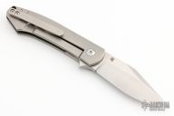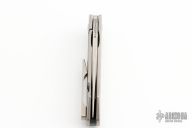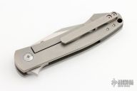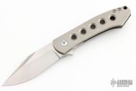 This Miniature Pinscher by Monterey Bay Knives is a Raymond Laconico design, it features a two-tone clip point blade with flipper. The handle has a bead blasted titanium frame with hole pattern, carbon fiber backspacer, tip up titanium clip, lanyard hole. Rides on bearings, nice detent, lockup and blade seating. Has a couple light scuffs, otherwise excellent condition. Comes with a zippered case.