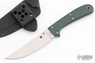 This knife by Spyderco is a limited edition and a Phil Wilson design, it has a satin finished blade with .116" blade stock and 1.112" blade depth, full tang construction with green G-10 scales. Comes with a kydex sheath with belt clip.  Excellent Condition.