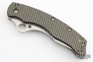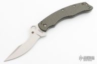This C146CFP Szabo Folder from Spyderco features a satin finish clip point blade with swedge and thumb hole. The handle is comprised of gold line carbon fiber/G10 laminate scales over steel liners and barrel spacers. Black coated 4 way adjustable pocket clip. Lanyard tube in pommel. Comes with original box. Has a couple light scuffs otherwise excellent condition.