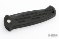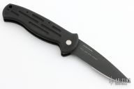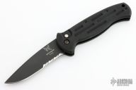 This AFO auto by Benchmade has a black partially serrated blade. Black anodized aluminium handle. Lanyard hole. Comes with original nylon sheath. Says "Only use with sheath" on the blade along with the NSN number. Has a couple light scuffs, otherwise excellent condition.