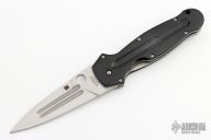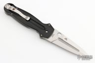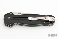 The EuroEdge’s dramatic, near-symmetrical blade is precision machined from CPM® S30V® particle metallurgy stainless steel and features several fullers to reduce its weight and strengthen it. The bead-blasted fullers stand in contrast to the blade’s beautifully executed satin finish to further highlight their presence. The blade’s single cutting edge is balanced by a long swedge (unsharpened bevel) and Spyderco’s Trademark Round Hole™ for quick, positive, one-handed opening.