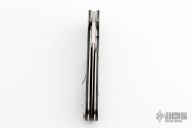 Not to be outdone, the blade is paired with an equally stunning handle featuring polished, 3-D-machined G-10 scales that also feature longitudinal fullers. The handle’s full stainless steel liners provide impressive structural strength and form the foundation of the knife’s stout LinerLock mechanism. Its shape is reminiscent of the style of classic Swiss daggers, bracketing the hand at each end for a secure grip while offering a generous palm swell in the center. A pocket clip configured for right-side, tip-up carry completes the design, ensuring both ease of carry and immediate access.