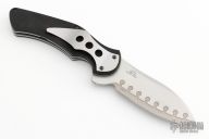 The Kershaw Junkyard Dog II by Kershaw features a fine bead blasted two-piece blade with false top edge. Easily opened via the Flipper system on the spine. The handle has black G-10 scales with stainless steel liners and down clip. Nice detent, lockup and blade seating. Comes with original box, papers and zippered case. Dated Jan 09. Has a couple light scuffs, otherwise excellent condition.