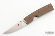 This Nilakka by Spyderco features a satin finished blade with thumbhole. The handle has brown G-10 scales, stainless steel liners, backspacer and tip up clip, left or right reversible. Comes with original box and papers. Has a couple light scuffs, otherwise Excellent condition.