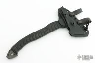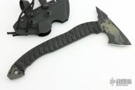 This Bleeding Heart Tomahawk by Half Face Blades features a 2.5" blade with spike at the rear, .219" blade stock, full tang construction. The handle has black G-10 scales. Comes with a kydex sheath. Excellent condition.