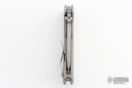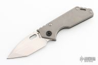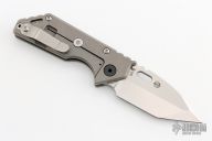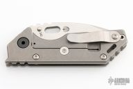 This 3/4 AR by Strider Knives features a stonewashed blade with notched thumbrest and thumbhole. The handle has a tumbled and anodized titanium frame with a stonewashed titanium tip up clip. Nice detent, lockup and blade seating. Blade Steel: S45VN.  Comes with original box. Excellent condition.