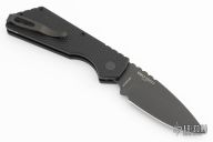 This Pro-Strider SNG by Pro-Tech and Strider Knives features a black blade with notched thumbrest. The handle has a black textured aluminum frame with black hardware and black stainless steel tip up clip. Abalone inlaid push button. Comes with original box and papers. Excellent condition. #60 of 100