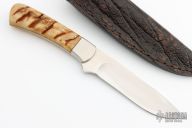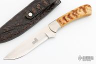 "I made my first knife in 1978 out of a saw blade, at that time I was a teacher at a technical school. I started making knives on a regular basis in 1991 and became a full time maker in 1996. I like to work with different ivory (legal), especially mammoth and warthog ivories. I work with steels like ATS34, 12C27, Damasteel and other Damascus. I live in South Africa and did my first show in the USA in 1996 and visit the States to do about 8 shows per year. I have been a member of the South African Knifemakers Guild since 1994. I make fixed blades as well as folders."