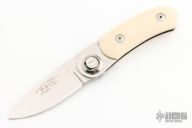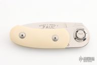 Made by Peterson Precision Engineering and marketed by Gerber, the Paul knife was introduced in 1996 and discontinued in 1997 with a total run of about 23,000. This folder has an axial locking mechanism and a handle scale of ivory paper micarta. This knife was assembled by hand. Excellent condition in the original box, very nice piece.