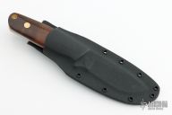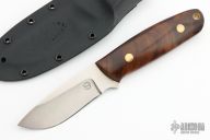 This KS-1 Master Skinner by Dozier Knives features a satin finished blade with .158" blade stock and 1.133" blade depth, full tang construction. The handle has Desert Ironwood scales with brass pins and lanyard hole. Comes with kydex sheath with belt clip. Excellent condition.