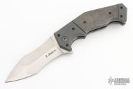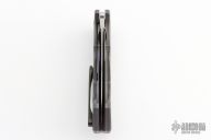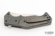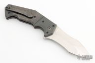 This Serpent Flipper by Randy Doucette features a satin finished spear point blade with false top edge and flipper tab. The handle has carbon fiber scales, zirconium bolsters, titanium liners with jeweled interiors, carbon fiber tip up clip. Nice action, detent, and blade seating. Includes a padded zippered case. Excellent Condition.