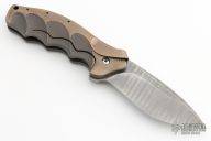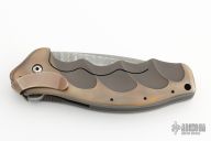 This knife is a "Unicorn," meaning, work like this is rarely seen out in the open. This Tactical beauty is one of maybe 10 "Lawman' style knives created by Ken Onion. This knife features a Damascus drop point blade.  The handle has a milled and anodized titanium frame with a matching tip up pocket clip.  Light scuffs are visible on the handle otherwise the knife is in excellent condition.