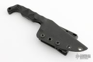 This B5 by Stroup Knives features a dark tumbled clip point blade with sculpted flats and a full tang construction.  .169" Blade Stock.  1.269" Blade Depth.  The handle features sculpted G10 scales.  Includes a kydex sheath with a Tek-Lok.  Includes the original box.  New from Maker!