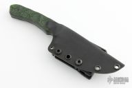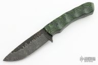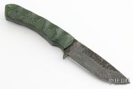 This knife by Stroup Knives features a dark tumbled drop point blade with sculpted flats and a full tang construction.  .166" Blade Stock.  1.060" Blade Depth.  The handle features sculpted G10 scales.  Includes a kydex sheath with a Tek-Lok.  Includes the original box.  New from Maker!