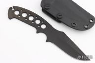 This Kasper Neck Knife from Pat and Wes Crawford features a DLC clip point blade with swedge. Notched thumb rest and deep choil provide a solid grip, .125" blade stock and 1.268" blade depth. Handle has been drilled to reduce weight for ease of carry. Includes kydex sheath with belt loop and ball chain. New from maker.