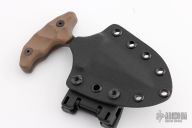 This Push Dagger by features a dark tumbled blade with a chisel ground blade with textured flats and a full tang construction. .170" Blade Stock. 1.48" Blade Depth. The handle has FDE G-10 scales. Includes the original box. New from maker!