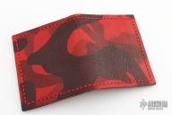 This Bi-fold Wallet by Garza Leather Goods is 100% handmade. The outside is red camo leather with matching pockets on the inside. Comes with original box. New from maker.