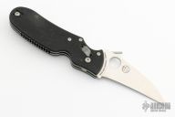 In the Philippines Visayan dialect, the literal translation of the word Pikal means to rip. In the U.S. the term Pikal remains relatively new but a company called Shivworks is making headway in its introduction to the American market. Its English definition is twofold: It is a rising martial arts genre and the name of a Spyderco knife designed to accompany this art form. As a self-defense platform, Pikal is carried out holding a knife in reverse grip with the sharpened edge facing inward toward the user. Pikal’s objective is not flowing drills with your opponent but rapidly and effectively striking and surprising. The Spyderco C103 P’Kal, offers features specific to this activity but these same features also translate well for everyday carry. The CPM S30V plain edge blade curves to a point. When held with the tip facing downward it feels natural and comfortable making pulling, downward cuts. Protruding from the top of the blade’s spine is a removable Emerson Opening feature. The device popularized and patented by Ernest Emerson of Emerson Knives, functions by catching the back of a pant’s pocket when drawing the knife, opening blade in the same motion. Spyderco’s P’Kal is designed for reverse grip use with a formidable choil on top of the handle that holds the little finger when gripping, affording better dexterity and control. Spyderco’s patented Ball Bearing Lock® sits above and behind the blade. The ball bearing component is housed in a plastic cover that’s accessible for both left and right hand opening. P’Kal clips in a pocket with a steel wire clip and carries tip-up. Made in Golden, Colorado U.S.A Earth Has some scratches, otherwise good condition.