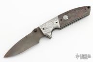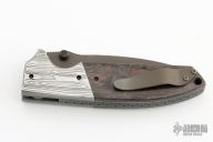 This D/A Auto by Cory Vallotton features a stainless spear point blade with dual thumbstuds. The handle has armored core stainless steel Damascus bolsters, Dark matter Fatcarbon scales over titanium liners and a steel backspacer.  Damascus push button.  Nice detent, action and lockup. Comes with a padded zippered case and COA.  New from Maker!